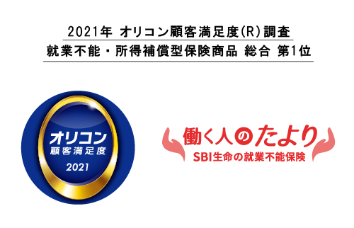 SBI生命保険株式会社(本社:東京都港区、代表取締役社長:小野尚)は、株式会社oricon ME(本社:東京都港区、代表取締役社長:小池恒、以下「オリコン」)が発表した「2021年 オリコン顧客満足度(R)調査」の保険商品ランキングにおいて、就業不能保険“働く人のたより”が「就業不能・所得補償型保険商品」にて総合1位を獲得したことをお知らせいたします。